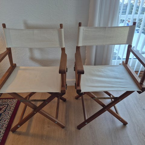 Stolene har brug for en renovering og rensning eller ny canvas til sæde og ryg.