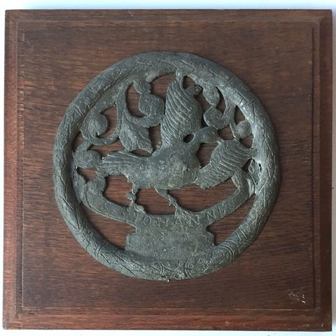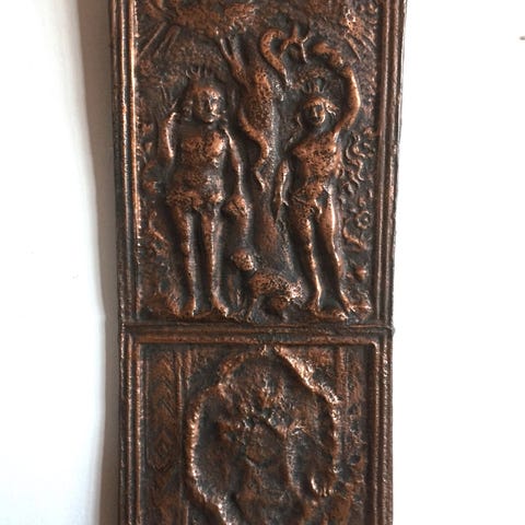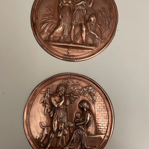Relief af kobber med scene fra græsk mytologi. Sandsynligvis efter Bertel Thorvaldsen. 1800-1900 tallet. Diam. 14 cm.