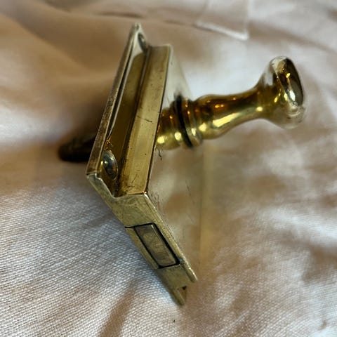 Gammelt patineret lukketøj, fra Dørgrebsfabrikken, København v./W. Jørgensen.