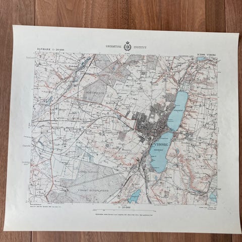 Vægkort fra 1969: Silkeborg og omegn (perfekt stand)
