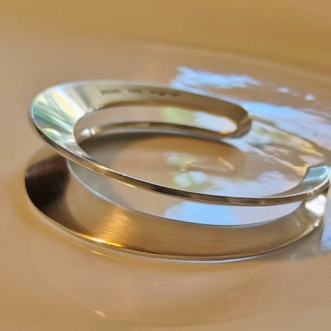 This elegant bracelet reflects the clean, modern lines that define mid-century Danish design, showcasing Hans Hansen’s signature minimalist style.