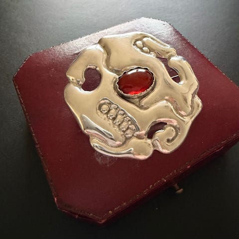Svensk sølv og bakelit broche "valsgärde" stribe uppsala.