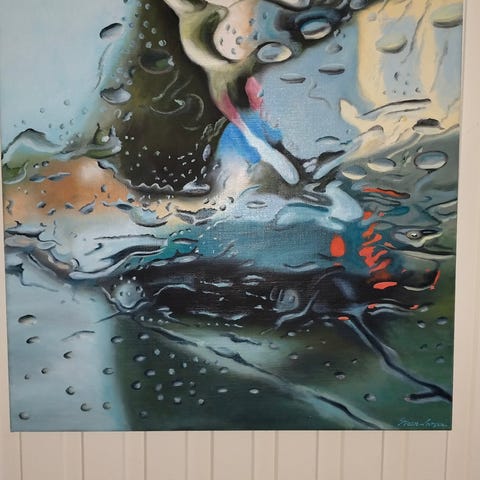 Kvadratisk maleri, af maleren Peter Sonne Jørgensen. Moderne maleri.