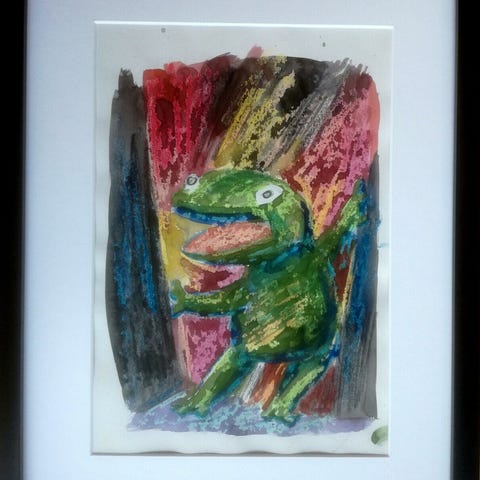 Komposition med fabeldyr. Ej signeret. Akvarel på papir. Med passepartout og sort ramme. Lysmål 29 x 20 cm (ramme 42 x 32 cm). (J68D)