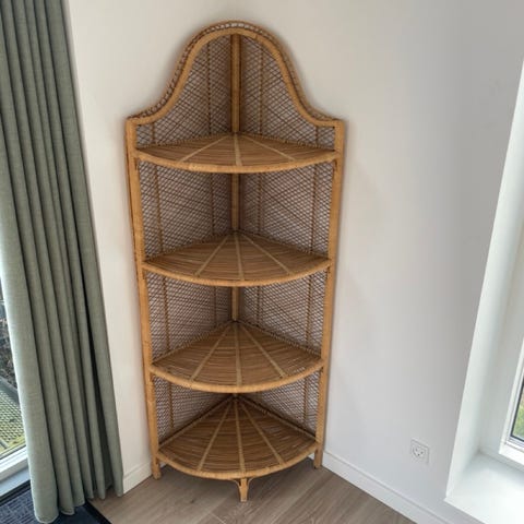 Svævende hjørnereol flere hylder i flot vintagedesign. Denne reol er perfekt til et hjørne, hvor der mangler noget nemt opbevaringsplads. Om reolen bruges til at opbevare bøger, planter, pyntegenstande eller noget helt andet, så kan den med dens stærke og robuste struktur holde til en del vægt. Det flotte design gør at reolen passer ind i de fleste værelseshjørner.