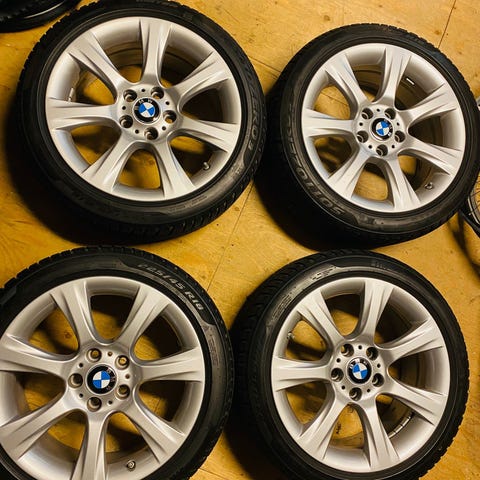 Et sæt super fine BMW 4 model 418i, 420d & 420i originale 18” alufælge med sommerdæk str. 225/45/18 ca.85-90% mønster, hjulene har tpms ventiler. Kan evt. monteres på din bil efter aftale. Prisen er for 4 stk. “først til mølle tilbudspris :-)”