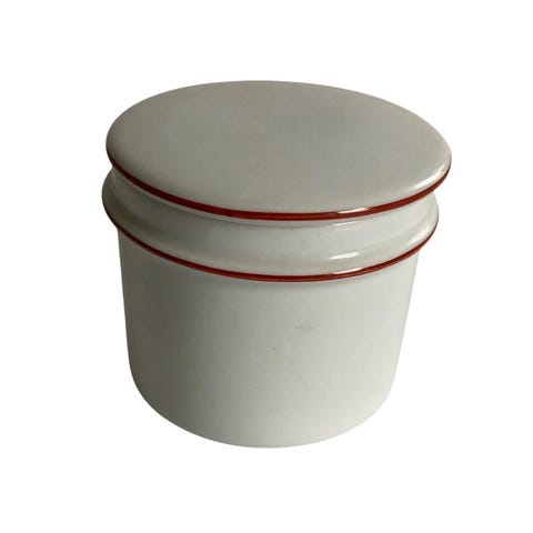 Mindre bæger uden låg, som måler 8 cm h og er 7,5 cm ø