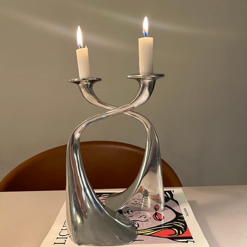 Hollywood regency candlestick That is the name of this style. Hollywood glamour large and heavy candlestick 37 cm high. in either black glass or stone and brass. Presumably from the 1940s-50s. I love the style, I don't know much about it.