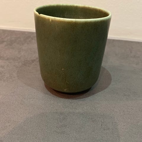 Skål af glaseret stentøj prydet med vædderhoved, Grøn - Saxbo