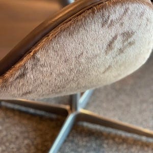 Arne Jacobsens Svanen, Brugt, Nypolstret i Elegance Mokka Læder med Sælskind Bagpå og med Returdrej!