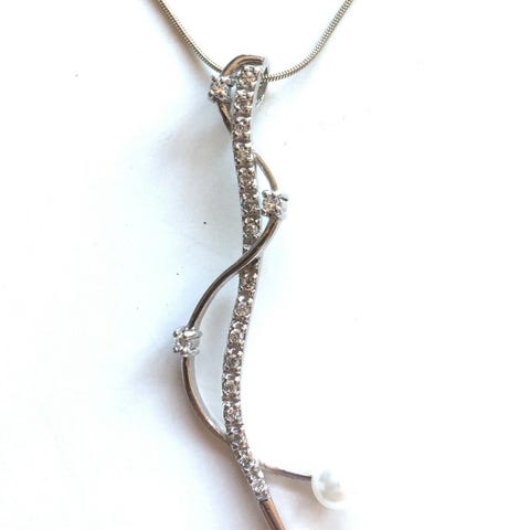 Halskæde magnet lås af rhodineret sølv, prydet med brillantslebne hvide sten. Længde 1,9 cm.