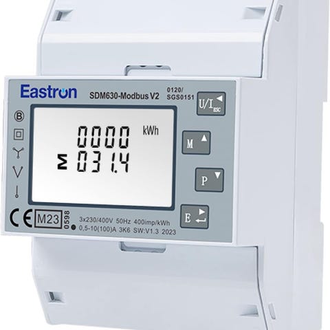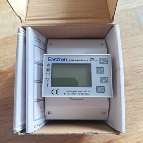 Elmåler / Bimåler, Eastron SDM72D - MID godkendt. 3-faset + N. Perfekt til hvis du vil måle på varmepumpe eller andre forbrugsenheder. Kan ikke nulstilles. Klart display som viser samlet forbrug. Med puls output.