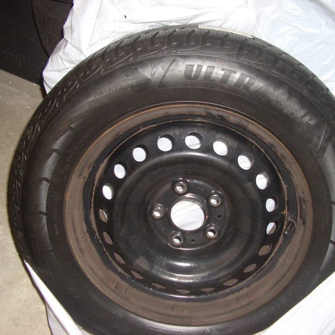 Stålfælge med Bridgestone vinterdæk.