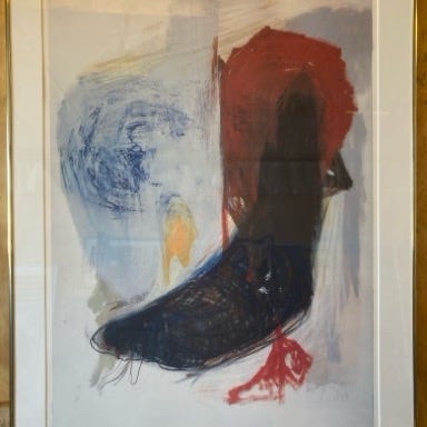 Peter Brandes. Ask et Embla III. Originallitografi i farver. . Signeret og nummeret med blyant i 100 eksemplarer. Trykt på Arches 75,3 x 55,5 cm. Har aldrig været indrammet