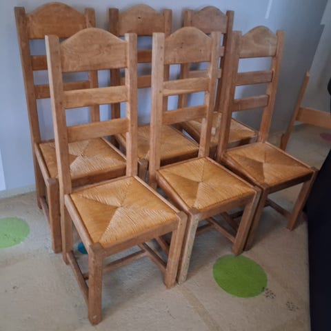 Vi har pt. 18 brugte Provence stole i massivt egetræ.