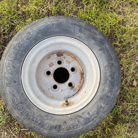 Trailerdæk. Med stålfælge. 3 stk. Samlet pris.