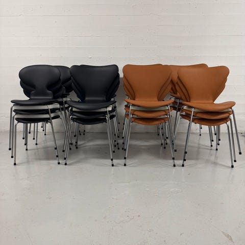 Vi har altid syver stole stående i Butikkerne, så du kan se farve og lædekvaliteter.