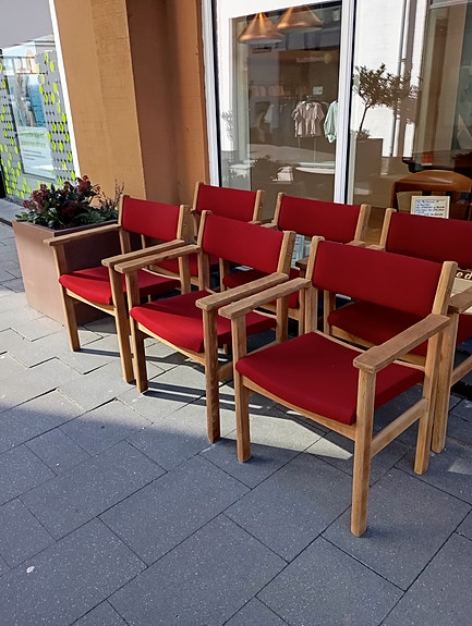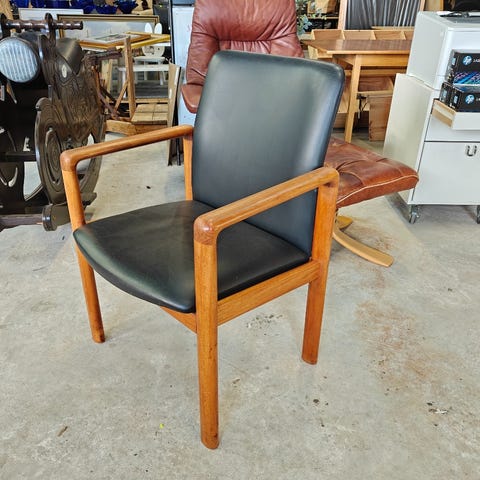 Ny polstret armstol i teak træ, fra Roslev møbler