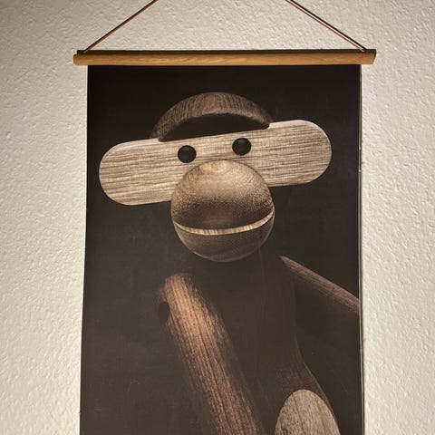 Indrammet plakat i hvid ramme.