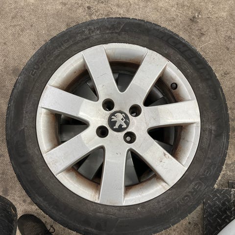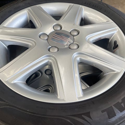 Ny sommerdæk med brugt Seat alufælge.