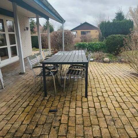 Bord 800,- stole inkl hynder 400,-styk, parasol 200,-