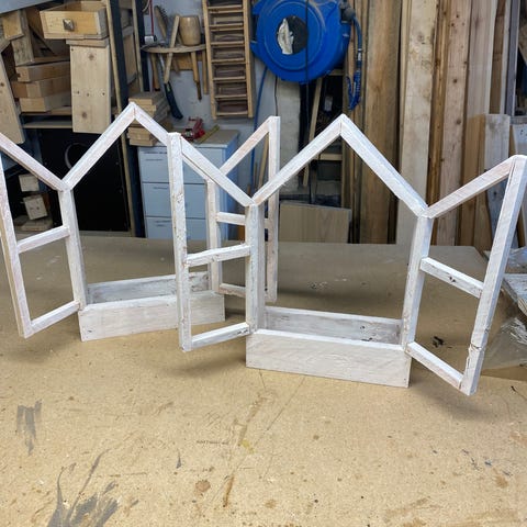 2 stk udstillingsvægge dobbeltsidet i lys træ.
