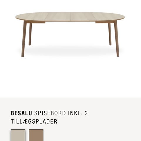Rundt spisebord med udtræk til 2 plader, som skal tilkøbes.