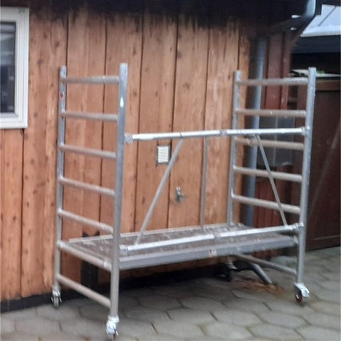 Stilladset kan transporteres i en mellemstor stationcar, kassevogn eller på en trailer og vejer ca. 30 kg.