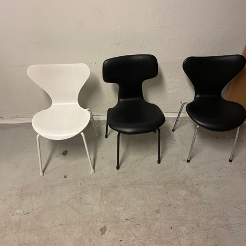 Smuk og nypolstret Syver Junior børnestol designet af Arne Jacobsen.
