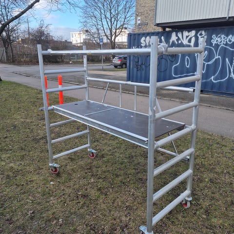 Stilladset kan transporteres i en mellemstor stationcar, kassevogn eller på en trailer og vejer ca. 30 kg.