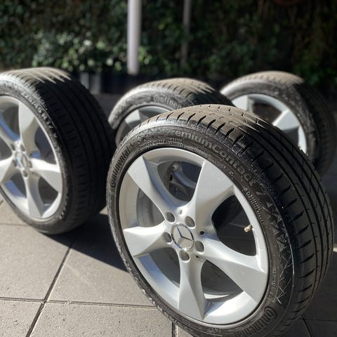 Sælger dette flotte sæt originale Mercedes alufælge i 17” monteret med Continental PremiumContact 6 sommerdæk i størrelsen 245/45 R17 Y XL.