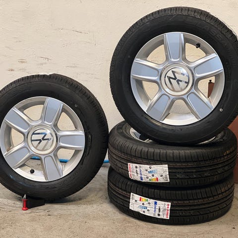 Ny sommerdæk med brugt 15” VW UP alufælge.