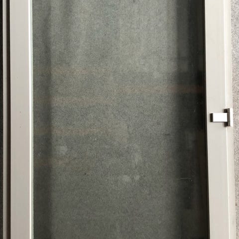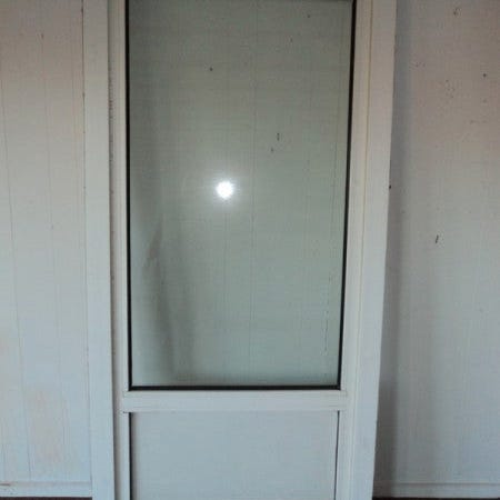 Døren er i plast med alu trin, kan kippes udaf i toppen