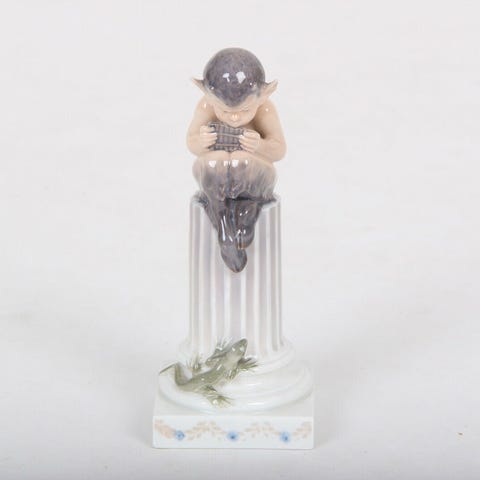 Royal Copenhagen Faun med slange. Nr. 1712. Designet af Christian Thomsen. 1. Sort. H. 12 cm. Hel og fin stand Pris 1995kr.