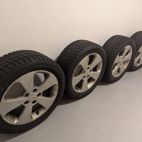 Ny vinterdæk med brugt Chevrolet alufælge.
