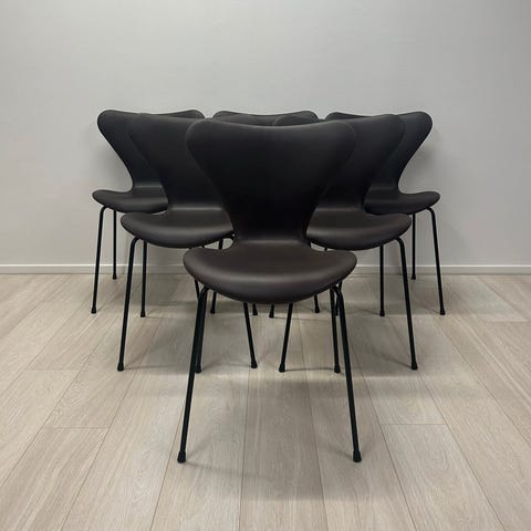 6.stk Nypolstret brugte AJ 3107 syverstole i vores Cognac soft farve