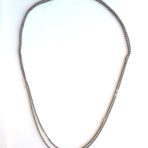 Ankerkæde halskæde af tretårnet sølv, prydet med Dagmarkors vedhæng af sølv. Begge stemplet. Halskæde længde 41 cm. Led diam. Cirka 1,8mm. Vedhæng længde i alt 2,7 cm. Vægt 3,9 gr.