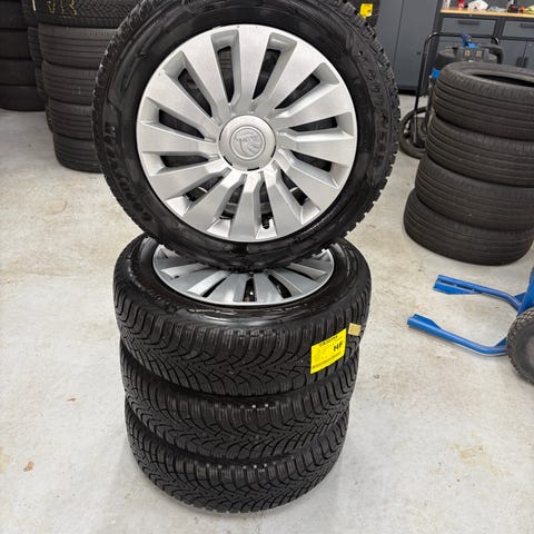 Et sæt super fine originale Skoda Kamiq, alufælge i størrelse 16", monteret med Continental vinterdæk, med 95/90% mønster tilbage. Disse alufælge har et krydsmål på 5*100. Sættet er i fejlfri stand uden ridser. Vinterdækkene er størrelse 195/60/R16 og eventuelt kan monters på din bil efter aftale. Prisen er 5000 kr. for hele sættet.