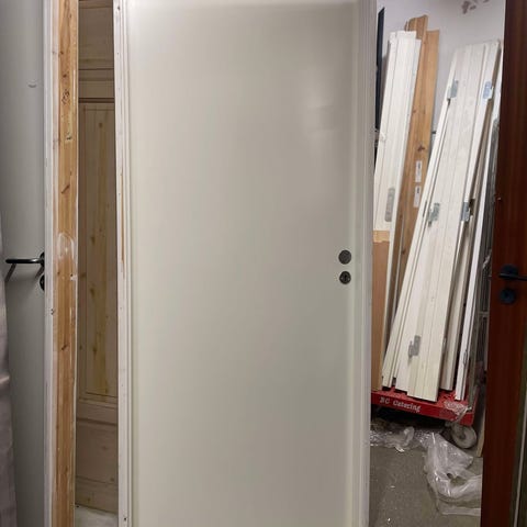 B. 81,5 cm. H. 203 cm. Ny. 3 stk. Fabriksmalet hvid. Højre hængte. Tung model. Fra Trehøje. Uden karme. Pris pr. stk.
