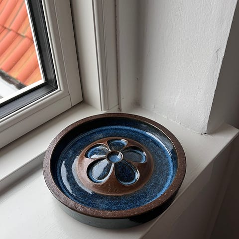Keramik relief med blå damer, designet af Marianne Starck for Michael Andersen. Bornholms keramik Det måler 28 x 20 cm.