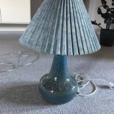 Søholm keramik lampe med blå glasur. Nr. 1043. Måler 26cm høj. 1. sort. Hel og fin stand. Pris 350kr.
