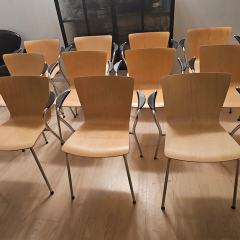 Super siddekomfort, elegant og let stol der ikke fylder meget. Kan stables og ses og prøves på Nørrebro