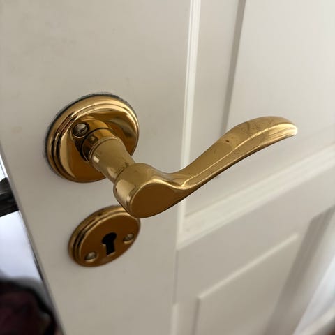Lidt specielle dørgreb i messing.Prisen er pr stk