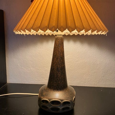 Smuk keramik bordlampe 36 cm høj til fatning 64 cm med skærm fin stand