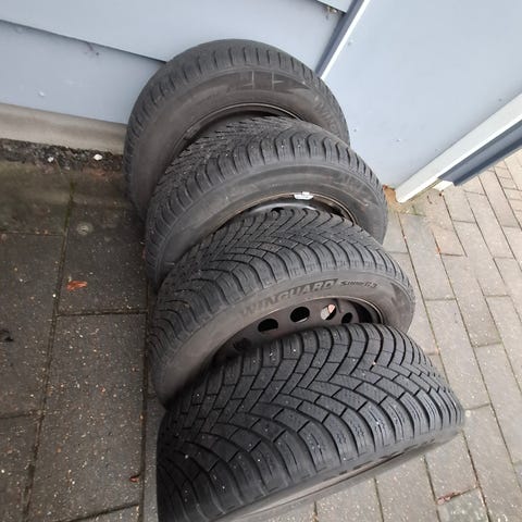 Et super fine sæt vinterhjul t. Skoda kamiq/scala med Bridgestone vinterdæk str. 205/60/R16, sælges for 2500kr. Dækkene har en mønsterdybe på 80/85% og der mulighed for montering på dine fælge/bil efter aftale. Prisen inkludere alle 4 dæk.