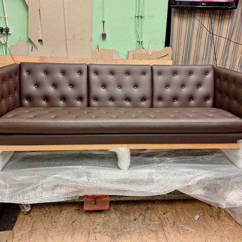 Woodmark sofa designet af Arne Christiansen model R50. Den skønneste sofa i moccafarvet læder. Sofaen som du ikk’ ser alle steder og virkelig kan bruges som afbilledet eller midt i rummet grundet dens design originalitet. …..