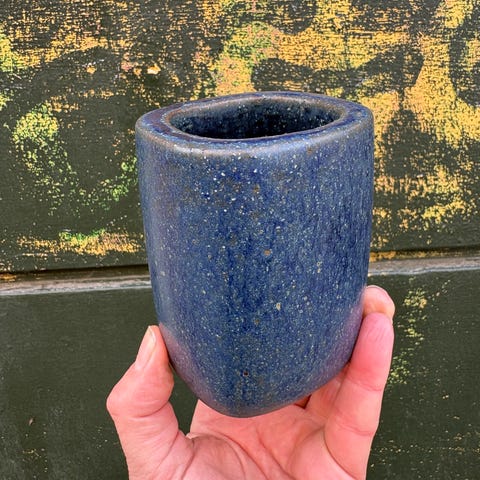Pæn krukke, brændt med olivengrøn glasur, med sølvske.