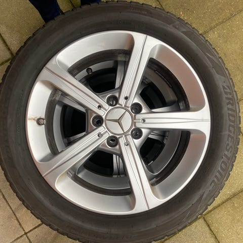 Ny sommerdæk med brugt Mercedes-Benz alufælge.