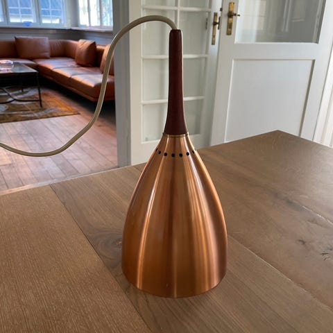 Kobber pendel med teaktop