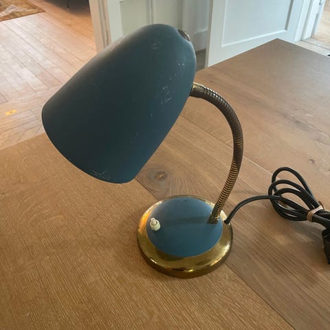 Den har afbryder på lampefoden og er i flot stand, selvom den er fra 1960'erne.